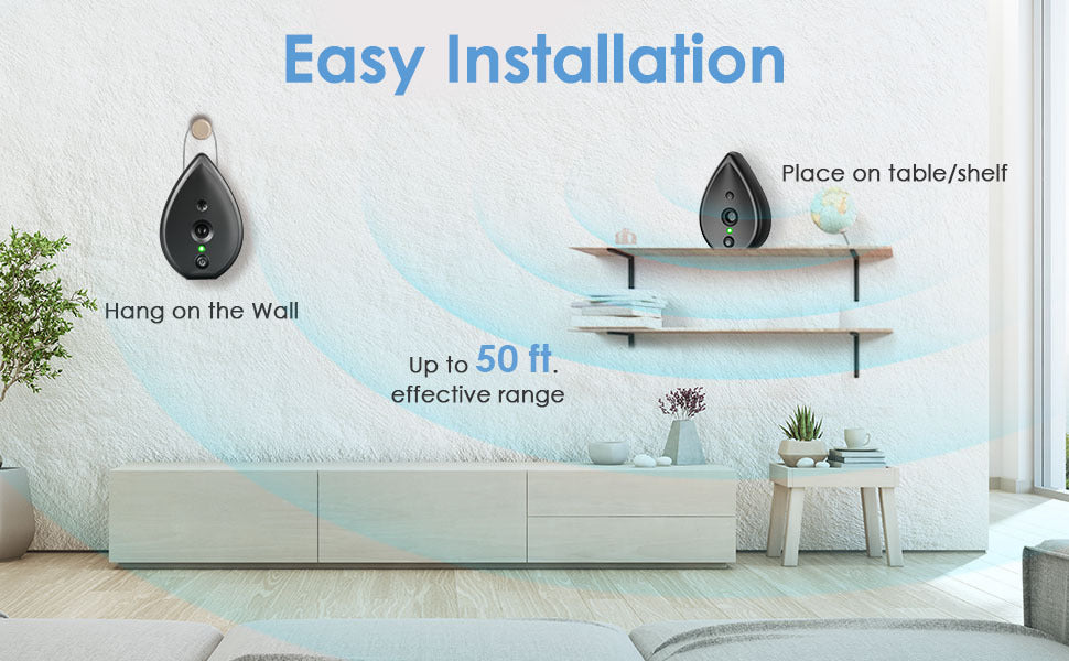 - Versatile Placement: Compact and lightweight (236g), it can be easily hung on a wall, fence, or tree, or placed on a table or shelf thanks to its sleek, teardrop design.